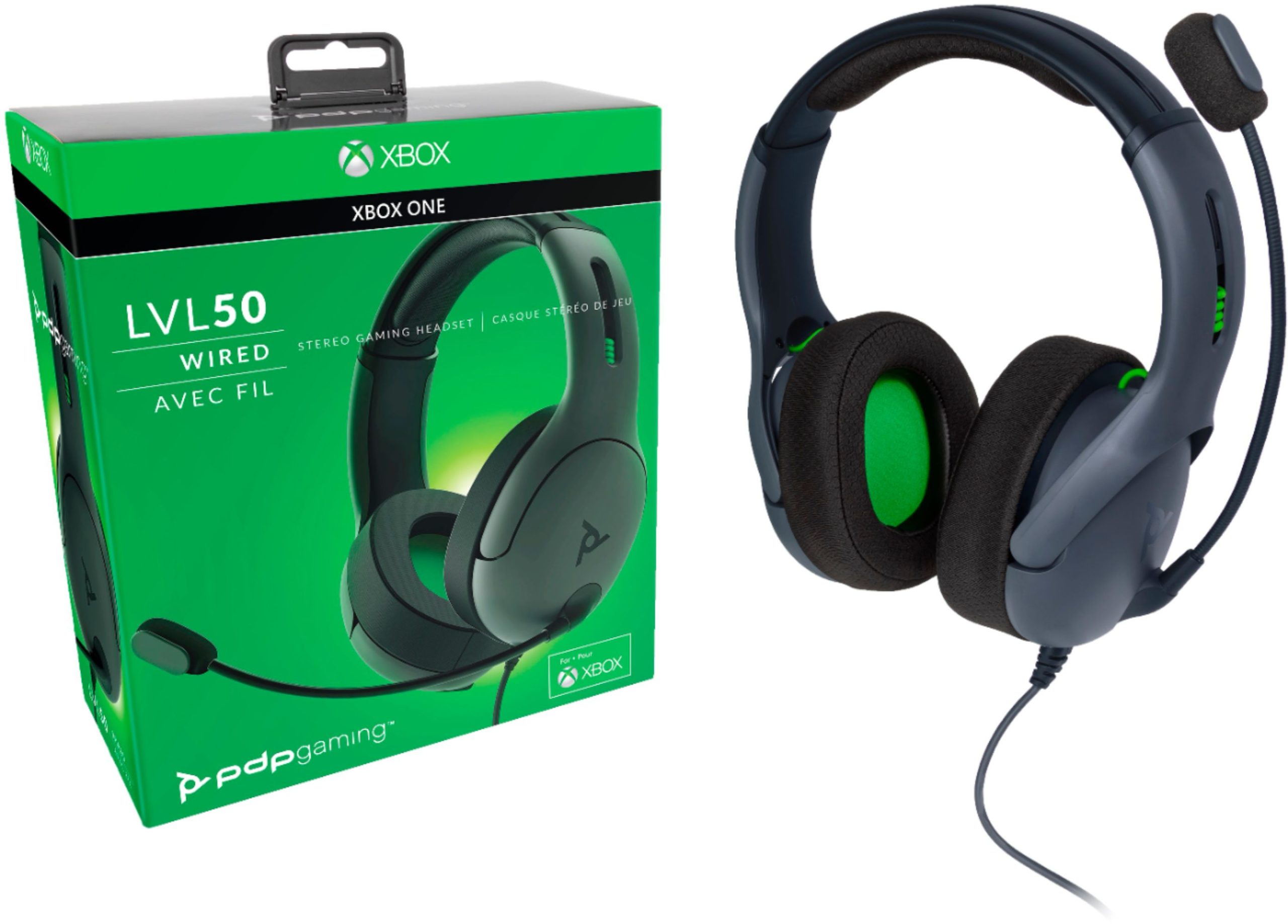Play at a high level and anticipate your enemy’s next move with the crystal-clear sound of the PDP Gaming LVL50 Wired Stereo Gaming Headset for Xbox. Get the enhanced gaming quality you deserve with unbeatable comfort and balanced sound. Stay at the top of your game and communicate clearly with your team through the flexible, noise-cancelling mic on the PDP Gaming LVL50 Wired Stereo Gaming Headset. Make volume adjustments on the fly with convenient on-ear audio controls, plus a flip-to-mute mic feature. Plug the headset directly into an Xbox compatible controller for a simple, hassle-free set-up. Enjoy dynamic sound through a pair of powerful 50mm High-Definition drivers. With breathable nylon-mesh over-the-ear cushions and an adjustable lightweight headband, this headset keeps you comfortable during long gaming sessions so you can focus on leading your team to victory! Compatible with Windows Sonic so you can enjoy spatial sound for gaming on Xbox Series X|S, Xbox One, and Windows 10 PCS. Features Breathable, lightweight build for long gaming sessions Hear every command with powerful 50mm audio drivers Bi-directional, noise-canceling mic delivers clear communication, or mute your mic in one swift motion with the flip-to-mute feature Compatible with Windows Sonic so you can enjoy spatial sound for gaming on Xbox Series X|S, Xbox One, and Windows 10 PCS Officially licensed by Xbox