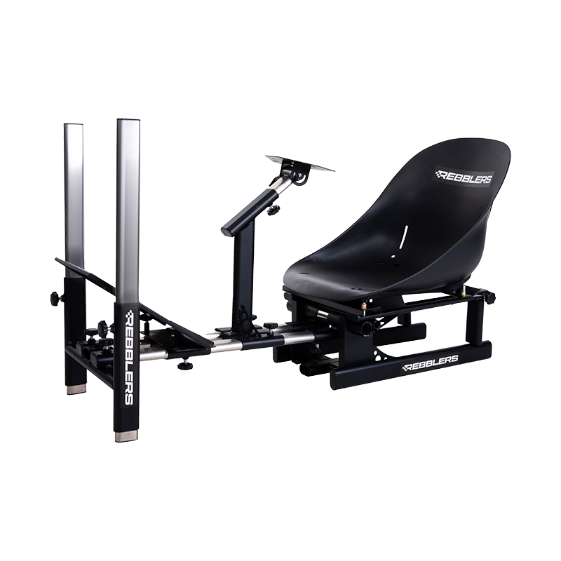REBBLERS KART RACING SEAT je naš kompaktni trkaći simulator s “cool” KART sjedalom. REBBLERS KART je izuzetno kompaktan, koji ima mnoge prednosti kada je u pitanju skladištenje i koje nećete primijetiti dok se utrkujete. Bilo da želite uživati u reli utrkama ili utrkama formule 1, sve to možete učiniti uz REBBLERS KART! Zahvaljujući patentiranom sustavu, možete prilagoditi okvir u trenu. REBBLERS KART je izrađen od izdržljivih materijala kao što su aluminij i dvostruke vodeće cijevi od nehrđajućeg čelika, tako da je REBBLERS KART iznimno čvrst i stabilan. Klize na dvostruke cijevi od nehrđajućeg čelika i mogu se ručno pričvrstiti praktičnim zvjezdastim vijcima. Bilo koja marka volana može se montirati na stup upravljača, kao i klatne. Stup upravljača i pedale možete pričvrstiti pomoću sustava stezaljki ili vijaka. Kompatibilan je s npr. uz Thrustmaster, Hori, Fanatec, Logitech itd.