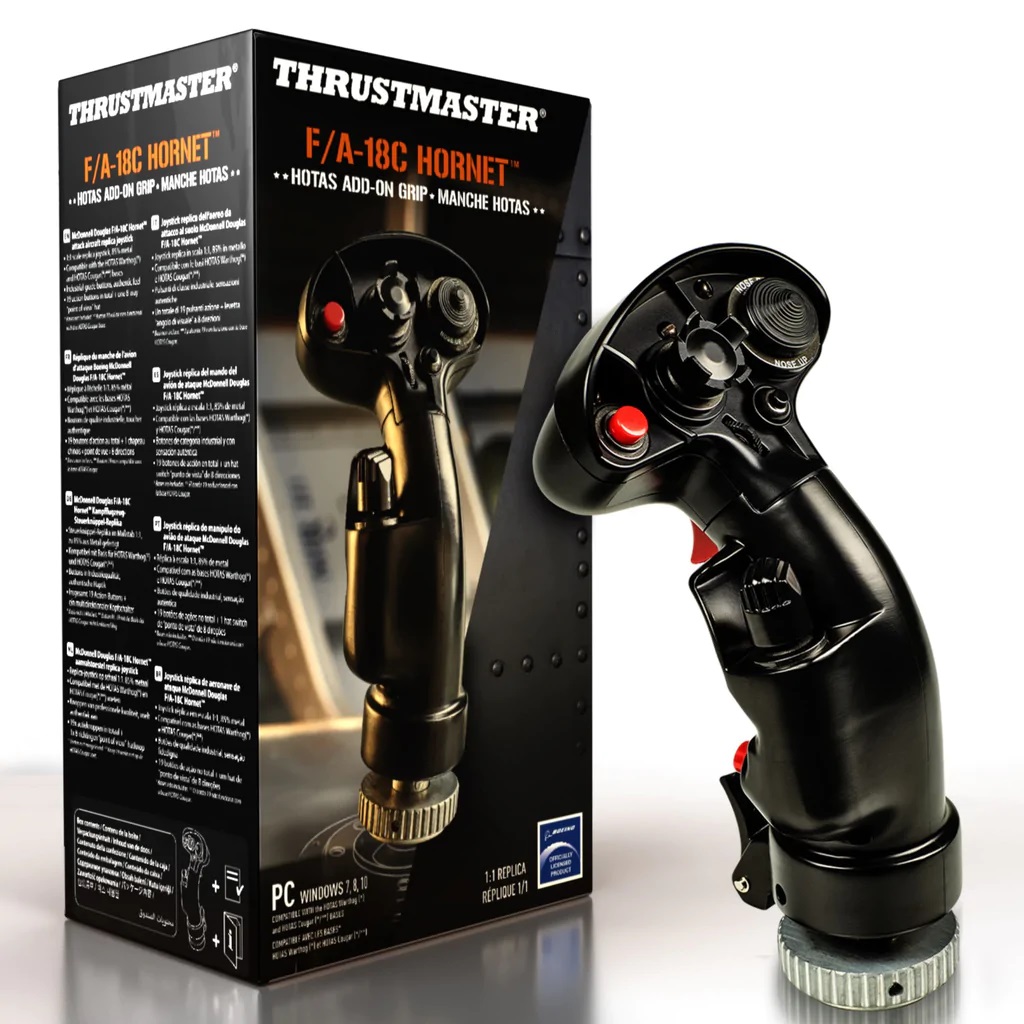 Thrustmaster F/A-18C Hornet HOTAS Add-On Grip replika je joysticka za igre i simulacije. Metalna struktura oblikovana je po uzoru na originalnu palicu za let s izvornim osjećajem kontrole za impresivno iskustvo letenja. Korisnici će imati pristup 19 akcijskih gumba i dvostupanjskom okidaču za kontrolu neba. Dodatno, joystick je kompatibilan s Thrustmaster bazama joysticka za napredno postavljanje. 100% originalan za svijet DCS-a F/A-18C joystick ima izravnu, izvornu integraciju u Digital Combat Simulator, tako da možete uživati u ergonomiji sljedeće razine i udobnosti igranja za vrhunsko iskustvo leta. Svestranost F/A-18C Hornet HOTAS joystick s 19 akcijskih tipki, uključujući ultra-realističan dvostupanjski okidač, i raznolikim, komplementarnim skupom funkcija omogućuje vam jednostavno upravljanje nebom i brze napade s zemlje u svim igrama simulacije leta. Također je idealan za igrače koji se žele okušati u svemirskim igrama ili igrama u starinskom stilu letenja. Kompatibilnost Joystick F/A-18C Hornet HOTAS Add-On Grip kompatibilan je s Thrustmaster bazama joysticka.