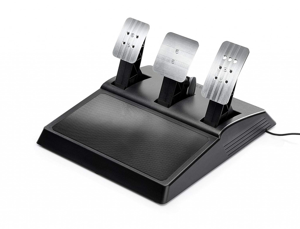 Stavite pedalu na metal s trkaćim volanom T300 RS GT Edition od Thrustmaster. Ovaj set volana i pedala za utrke, službeno licenciran od strane Gran Turisma, dizajniran je za PlayStation 4 i kompatibilan je i s PlayStation 3 i Windows računalima. Ima metalni volan, ojačan gumom, i potpuno podesiv set pedala. Kako bi vam T300 pružio optimalno iskustvo vožnje, sustav pričvršćivanja je robustan i svestran te radi sa svim nosačima, poput stolova, stolova, kokpita i još mnogo toga. Osim toga, Thrustmaster Quick Release sustav omogućuje vam da zamijenite trkaći volan s drugim Thrustmaster proizvodima za još više prilagođavanja. Odvojivi metalni volan Službeni PlayStation 4 gumbi za brzi pristup društvenim značajkama i više u bilo kojem trenutku Realističan trkaći volan promjera 11″ (28 cm) sa sredinom od brušenog metala Pojačana gumena tekstura na cijelom opsegu volana za bolje prianjanje Teži više od 1,2 kg za realnu inerciju i povratnu informaciju Dvije metalne lopatice od 5″ (13 cm) s životnim ciklusom koji prelazi 10 milijuna aktivacija Opsežna oprema za vožnju s 13 akcijskih gumba (uključujući 2 na bazi) i podlogom za usmjeravanje Sustav brzog otpuštanja omogućuje vam lako mijenjanje trkaćih volana 1080° motor s povratnom spregom Motor bez četkica industrijske klase pruža glatki, brzi i realistični efekt povratne sprege Optimiziran mehanizam s dvostrukim remenom bez trenja za nesmetan i tih rad H.E.A.R.T tehnologija pruža preciznu 16-bitnu rezoluciju za 65.536 vrijednosti na upravljaču kotača Podesiv kut rotacije od 270 do 1080° Kompatibilan sa svim nosačima kao što su stolovi, tableti, kokpit i još mnogo toga Podesive metalne pedale Dugi raspon putovanja Pedala kočnice s progresivnim otporom i konusnom gumenom kočnicom Mod Pedale gasa i spojke mogu se podesiti po visini i razmaku