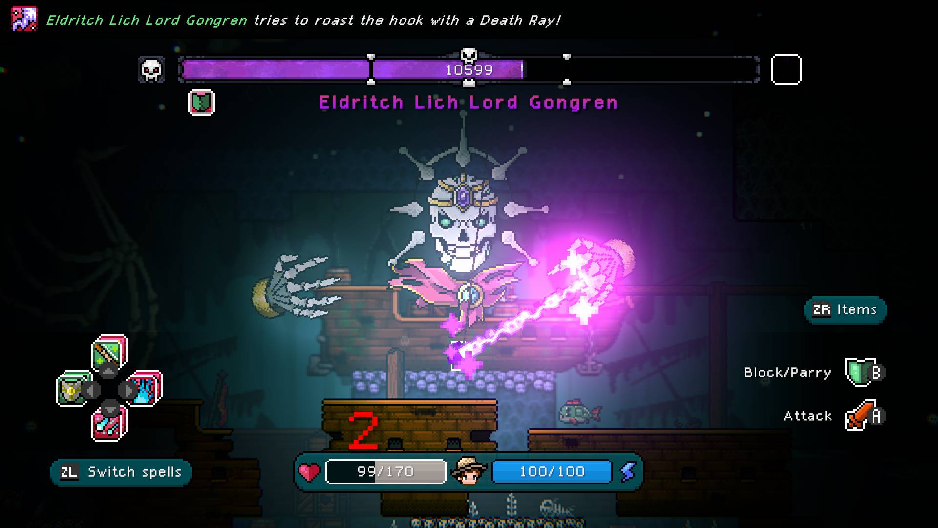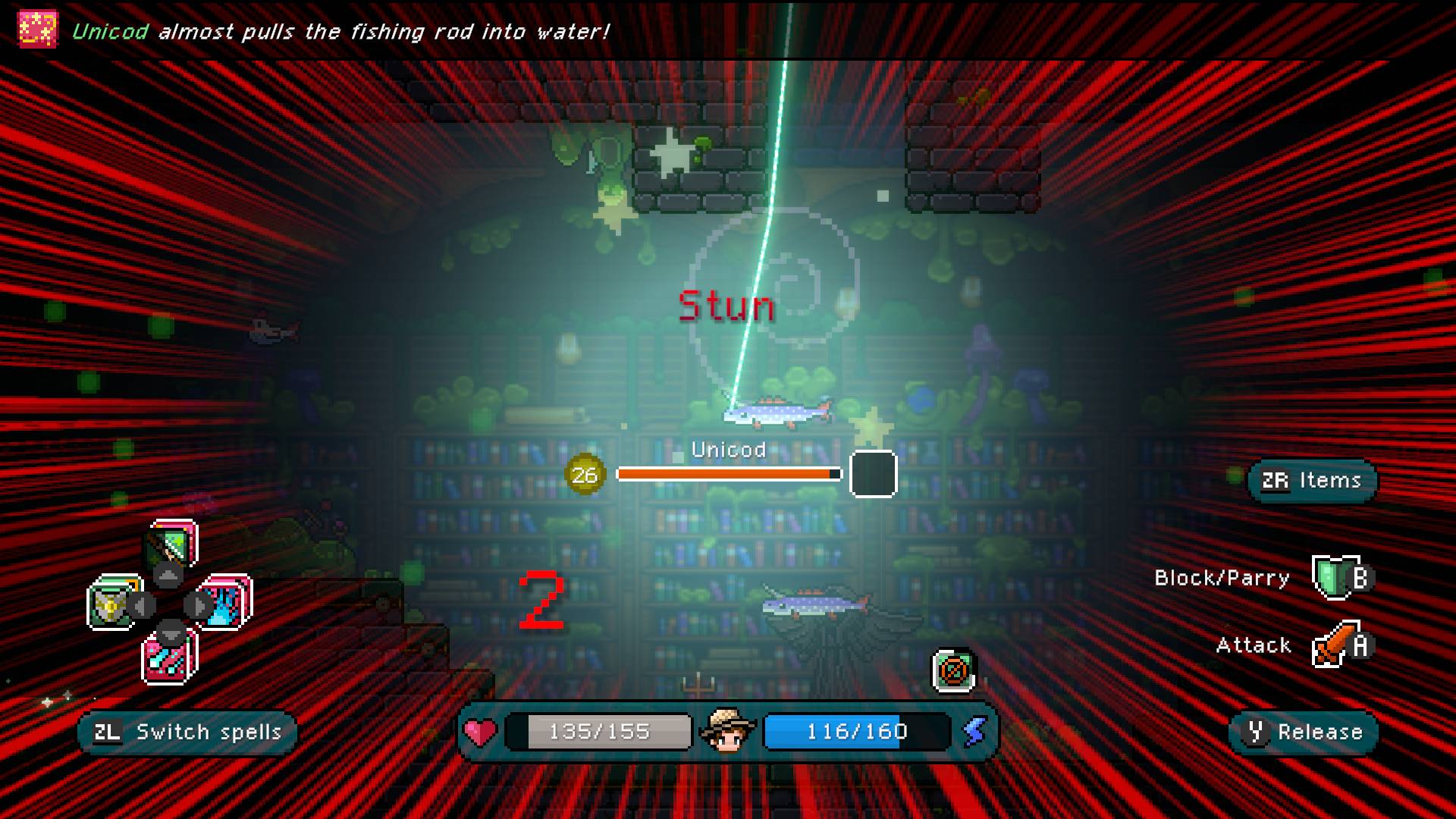 Uključi se u neustrašive ribolovne bitke kako bi ispunio zadatke, povećao svoju snagu i otključao čarolije koje će ti pomoći protiv vodenih protivnika. Odaberi pravi mamac za pravi ulov i tempiraj svoje napade kako bi postigao savršenu pobjedu. No pazi se šefovskih riba koje vrebaju u dubinama – one će doista testirati tvoje vještine.