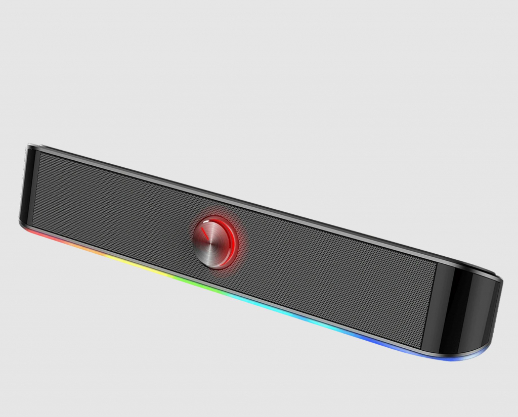 REDRAGON ADIEMUS GS560 je “zvučna traka” s RGB osvjetljenjem. Ima nadograđeni upravljački program koji pruža jasnu i kristalno čistu kvalitetu zvuka u kombinaciji s bogatim basovima. Zvučnik ima četiri različita načina osvjetljenja, i dinamičko i statično LED osvjetljenje. Pozadinsko osvjetljenje sinkronizirano je s reprodukcijom glazbe. Precizna i kompaktna tipka za glasnoću u kombinaciji s prekidačem za uključivanje / isključivanje nudi vam prikladno i precizno podešavanje glasnoće. USB priključak s 3,5 mm audio i mikrofonskim kabelom omogućuje upotrebu na osobnim računalima, televizorima, prijenosnim računalima i pametnim telefonima. Značajke: 6 svjetlosnih načina: sinkrono RGB / dinamičko treptanje, 7 ciklusa boja / crveno zeleno plavo dugo osvjetljenje. Isključite / kontrolirajte glasnoću. Poboljšani bas efekt. Ulazna snaga: 5V, USB + 3,5 mm AUX. RMS zvučnici: 3 W x 2. Veličina 400 x 75 x 67 mm Frekvencija: 150Hz ~ 20kHz.