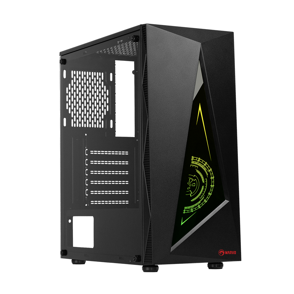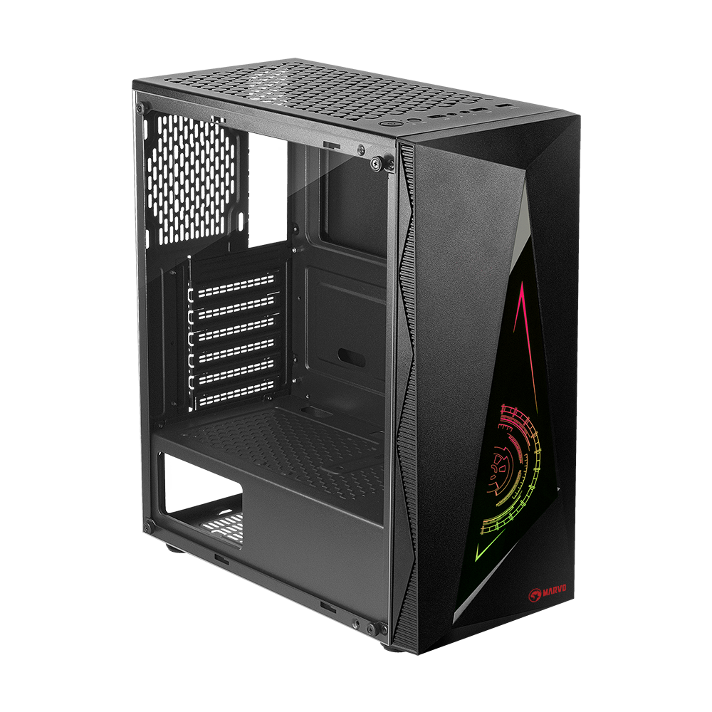 MARVO CA-119 PC CASE je izuzetno ATX mid-tower kućište koje nudi kombinaciju performansi i stila. Kućište ima bočne stijenke od kaljenog stakla koje mu daju jedinstven dizajn, jednostavno upravljanje kabelima za organiziraniji izgled i dovoljno prostora za ugradnju raznih komponenti. RGB prednja ploča ima elegantan dizajn s ugrađenim načinima osvjetljenja kojima se može upravljati LED upravljačkim gumbom. MARVO CA-119 kućište dizajnirano je za igrače koji žele kombinaciju performansi i stila u svom sustavu. Tehnički podaci: Materijal: KALJENO STAKLO (bočna ploča), PLASTIKA + RGB PLOČA + PVC (prednja ploča) Ležišta za diskove: 3,5” HDD x 2, 2,5” SSD x 2 Utori za proširenje: 7 Priključci: USB 3.0 x 1, USB 2.0 x 2, AUDIO x 1 VGA kartica (maksimalno dopušteno): 300 mm CPU hladnjak (maksimalno dopušteno): 155 mm Podržani ventilatori: Prednji 120 mm x 3 / Gornji 120 mm x 2 / Stražnji 120 mm x 1 Podrška za napajanje: ATX Format: ATX, MINI ITX, MICRO ATX