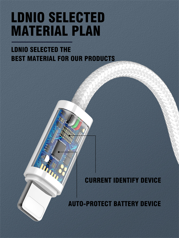 LDNIO CHARGING DATA CABLE BRAIDED (A-L) 25W 1M IPHONE WHITE LS901_L