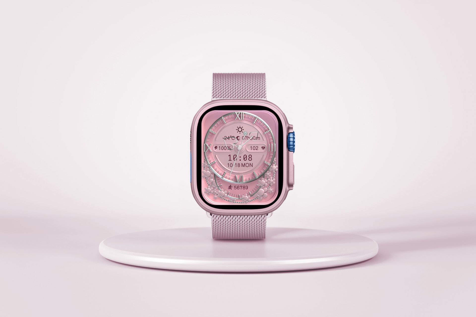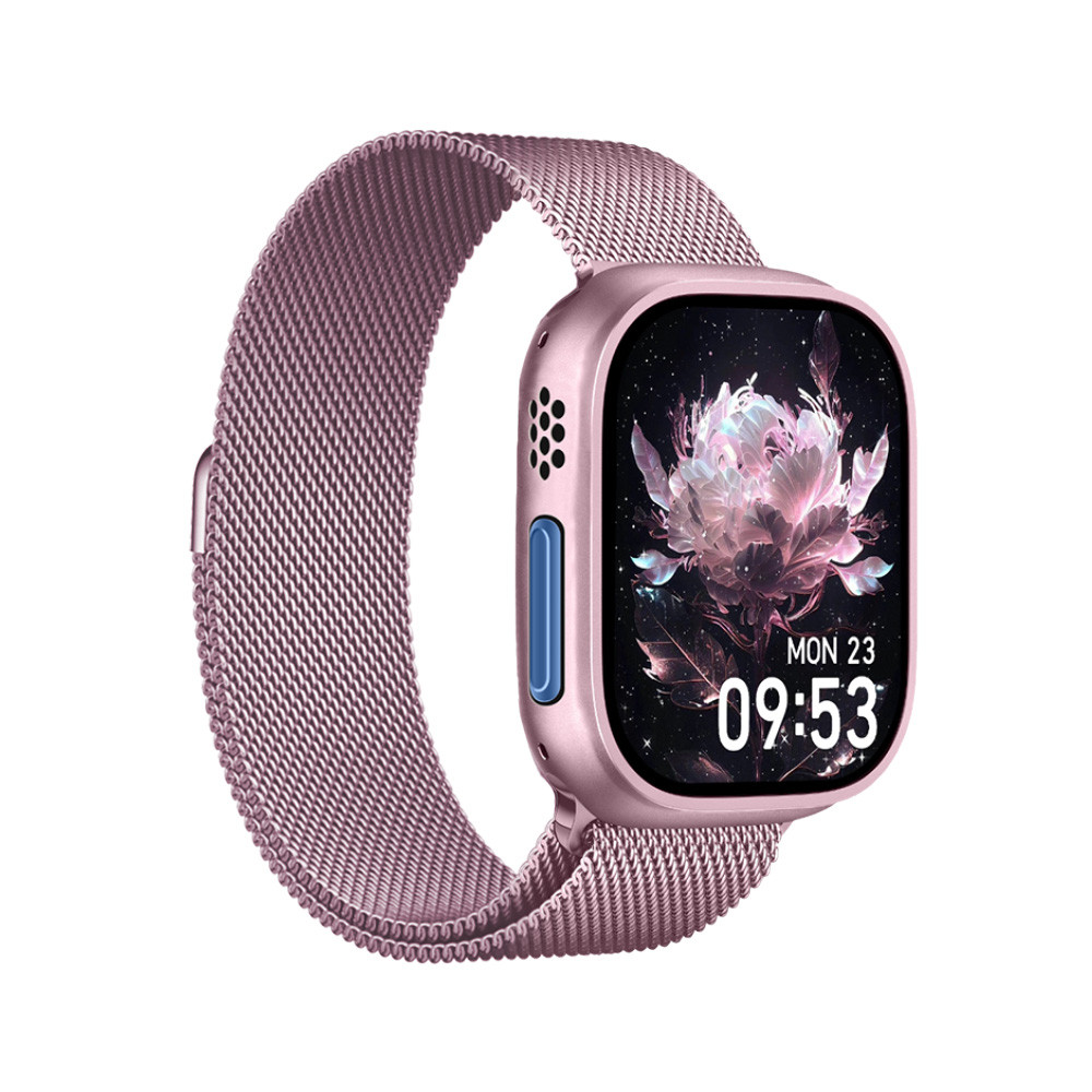 Moye Kronos 4 Mini moderan je pametni sat posebno dizajniran za žene, spajajući sofisticirani dizajn i napredne funkcionalnosti u kompaktnom formatu. Izrađen od izdržljivog metala, oduševljava svojim elegantnim ružičastim metalik finišem, čineći ga savršenim modnim dodatkom za svaku prigodu. Paket dolazi s čak 7 izmjenjivih narukvica, pažljivo usklađenih s dizajnom sata, što omogućuje svestranost i jednostavno prilagođavanje različitim stilovima. Kronos 4 Mini nudi do 7 dana redovnog korištenja te do 25 dana u stanju mirovanja. Sat se u potpunosti napuni za samo 2 sata, osiguravajući dugotrajnu upotrebu uz minimalne prekide.Tehnički podaci: Vrsta zaslona: 1,75″ TFT Rezolucija: 240 x 296 piksela Vodootporan: IP67 Bluetooth verzija: 5.2 Vrijeme upotrebe bez punjenja: 7 dana Vrijeme pripravnosti: 25 dana pripravnosti Vrijeme punjenja: 2h Utor za SIM karticu: br Naziv aplikacije: WearFit pro Android i iOS Bluetooth poziv: Da Praćenje zdravlja: Da Ostale funkcije: vremenska prognoza, alarm, daljinski upravljač kamere, multi-sport mod, štoperica Težina: 35g Materijal: Metal + ABS Sadržaj paketa: pametni sat, 7 remena, USB punjač, uputstvo za upotrebu *Podaci mjerenja ne mogu se usporediti s profesionalnom medicinskom opremom.